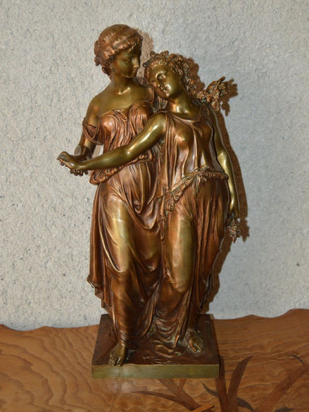 Notre groupe en bronze, au caractère très intime, est le seul exemplaire connu de ce sujet, ce qui lui donne un caractère unique.